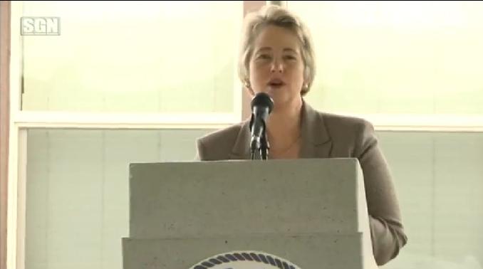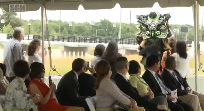 Mayor Parker speaking on SGN Television just before the Lion Dance Performance.